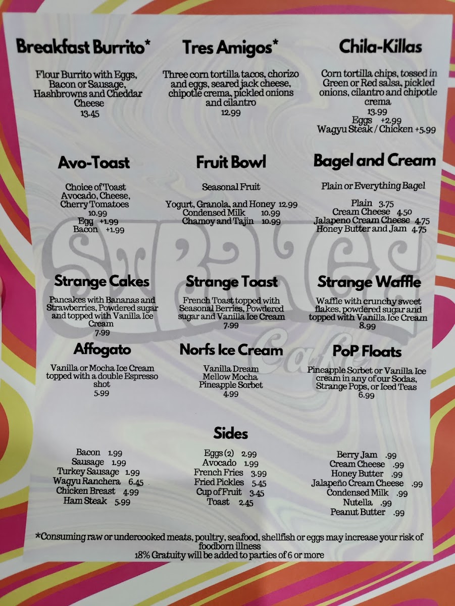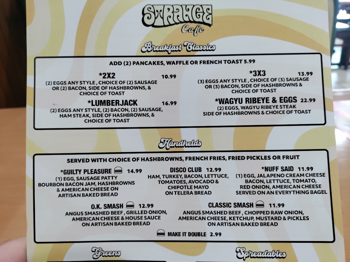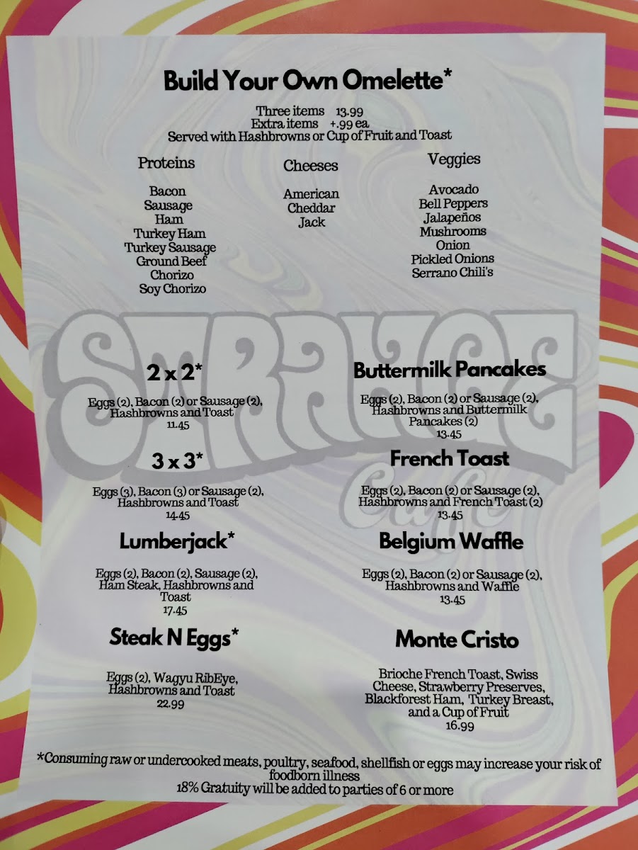 The menu is structured to accommodate both quick orders and casual dining experiences, focusing primarily on breakfast and lunch offerings with an emphasis on customizable and hearty meals paired with specialty beverages.